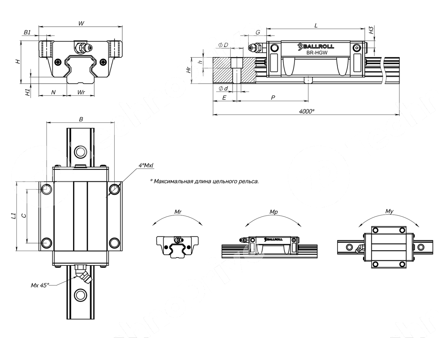 Фланцевая каретка стандартной длины BR-HGW30CC ZAH BALLROLL