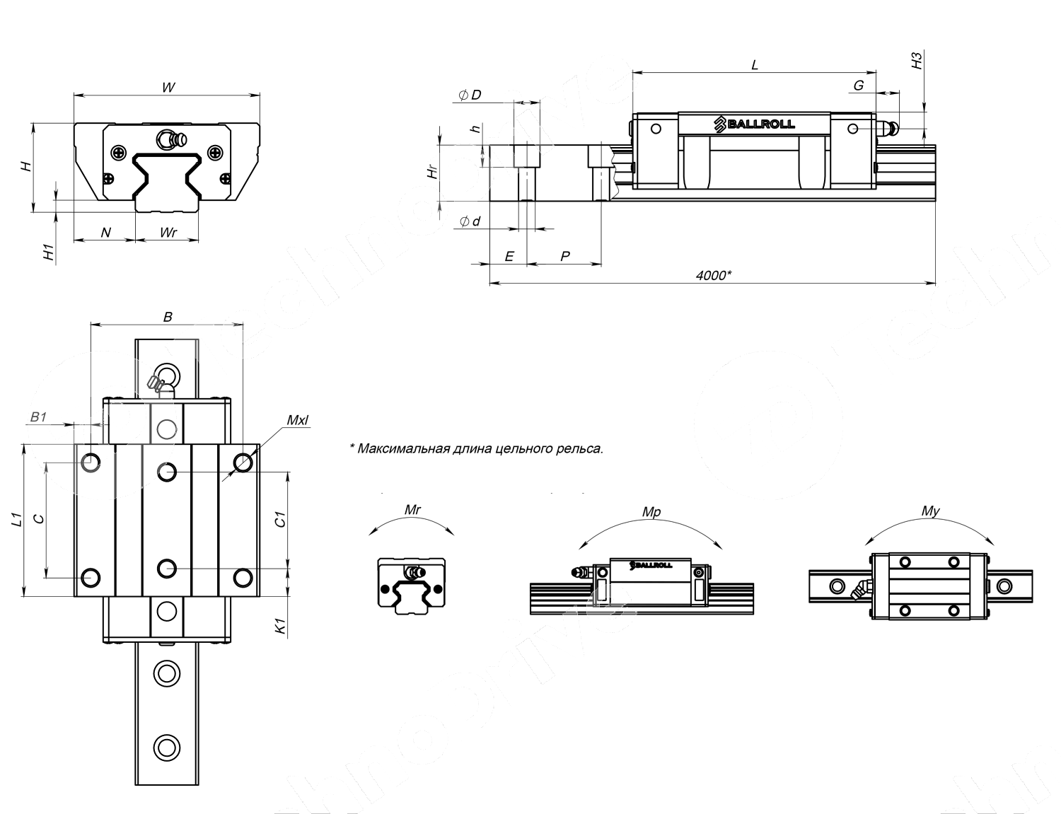 Линейная фланцевая роликовая каретка BR-RGW55CC ZAH BALLROLL