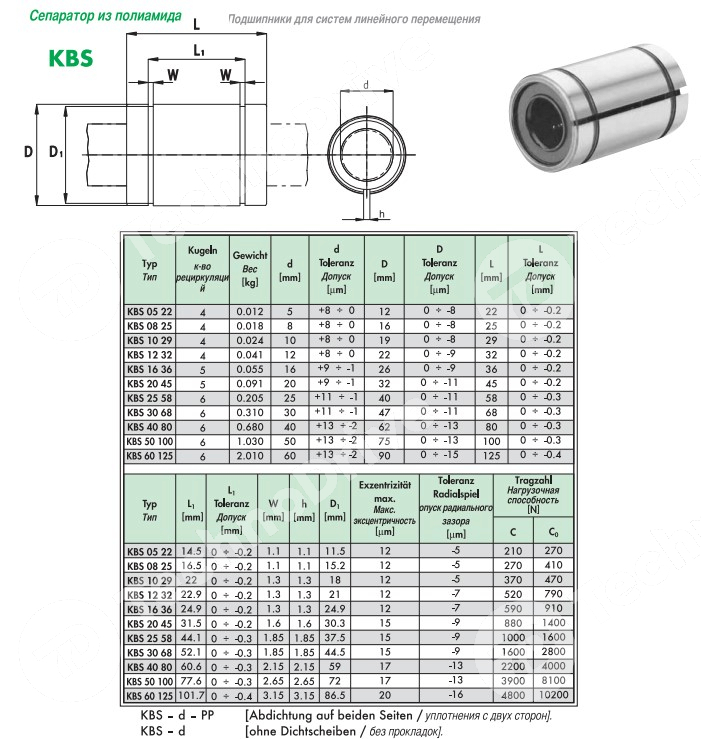 Линейный подшипник KBS2045PP NBS