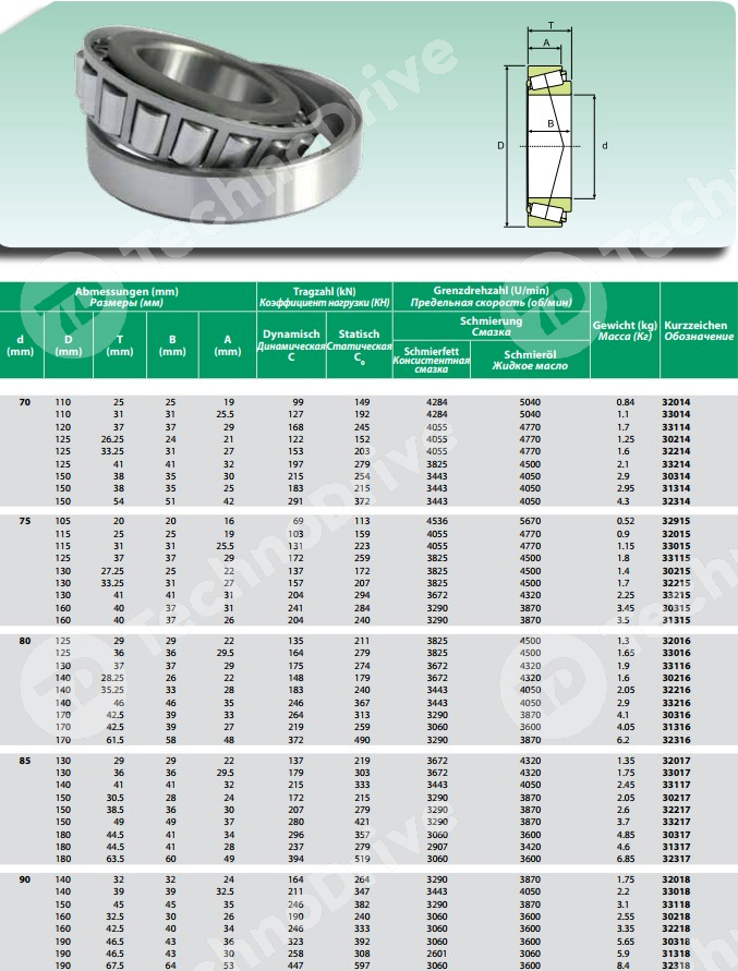 | Аналог FAG | Альтернативная маркировка подшипника FAG 31315-A |