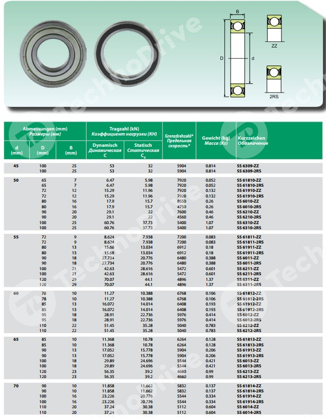 | Уплотнение (расшифровка) | 2RS (двустороннее резиновое уплотнение) |