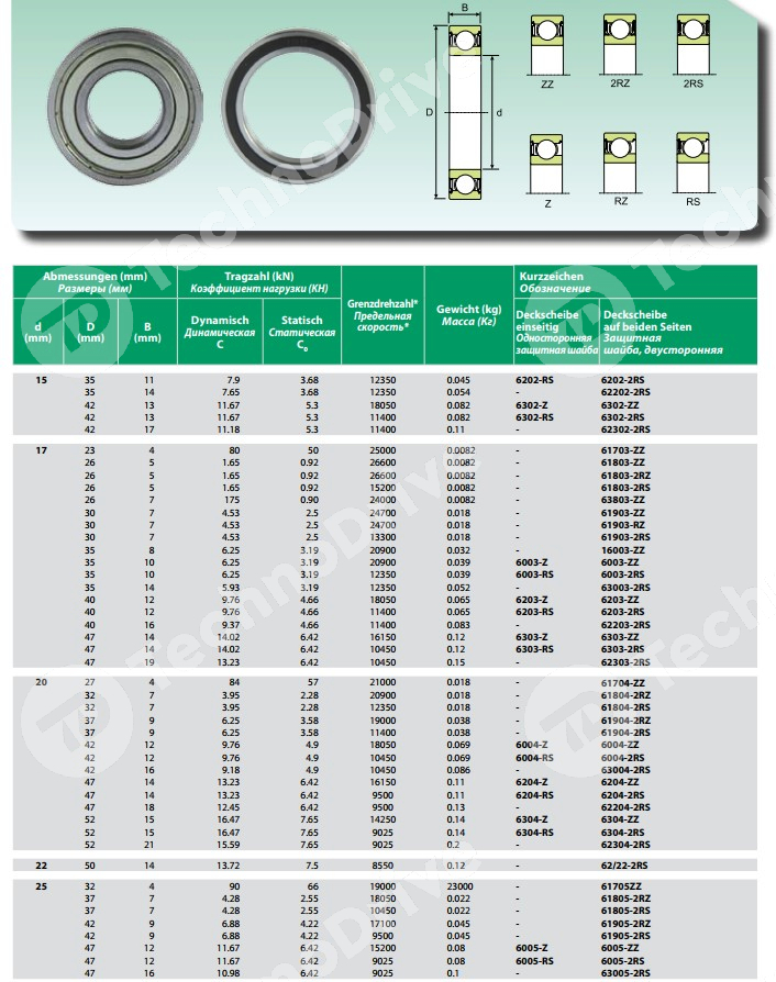 | Уплотнение (расшифровка) | ZZ (двусторонняя защитная металлическая шайба) |