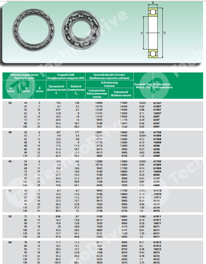 | Предельная скорость (консистентная смазка), об/мин | 8415 |