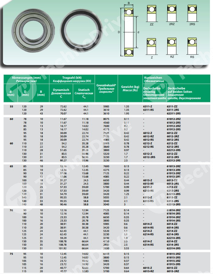 | Предельная скорость (жидкое масло), об/мин | 6300 |