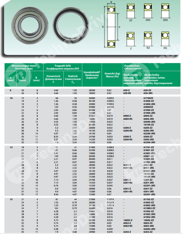 | Предельная скорость (жидкое масло), об/мин | 6300 |