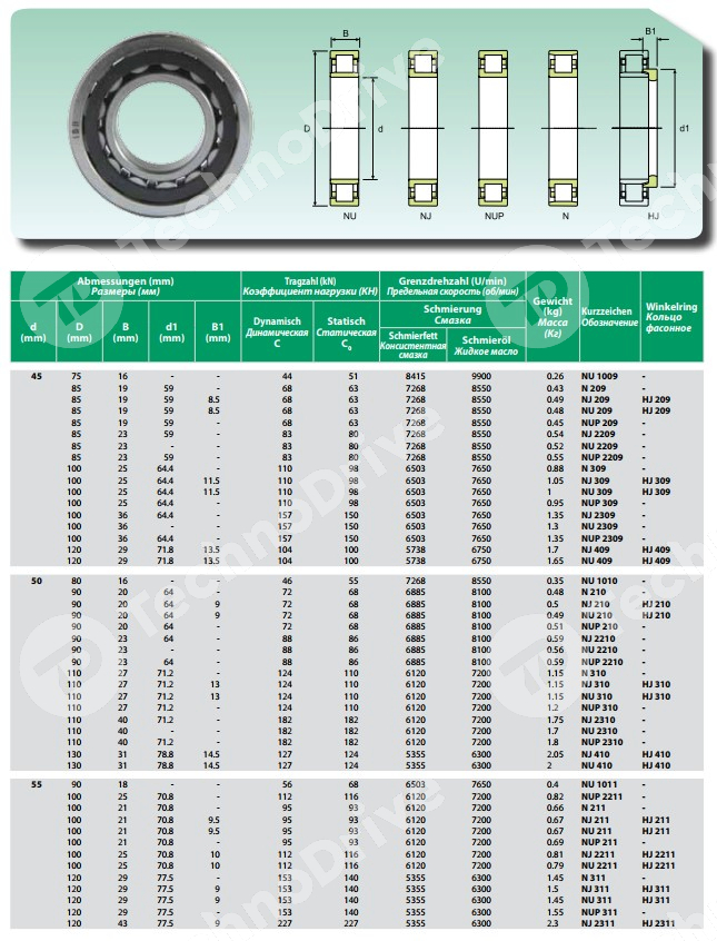 | Аналог FAG | Альтернативная маркировка подшипника FAG NU210-E-TVP2 |
