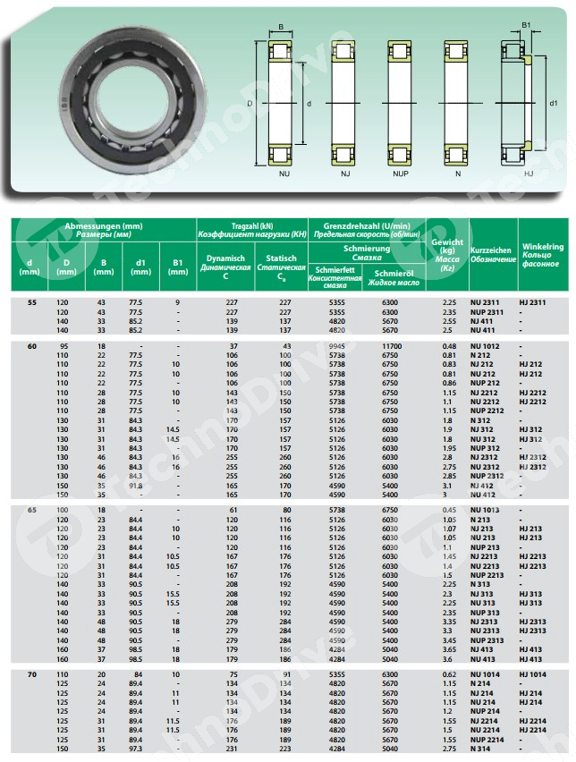 | Аналог FAG | Альтернативная маркировка подшипника FAG NU212-E-TVP2 |