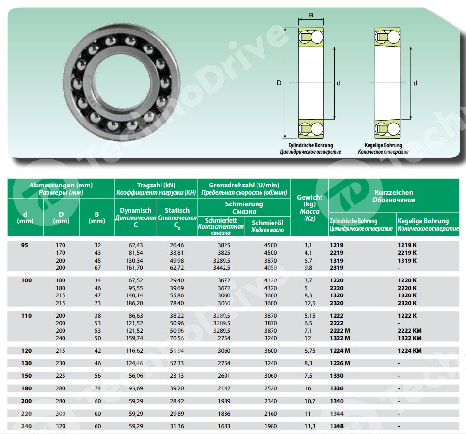 | Предельная скорость (жидкое масло), об/мин | 9000 |