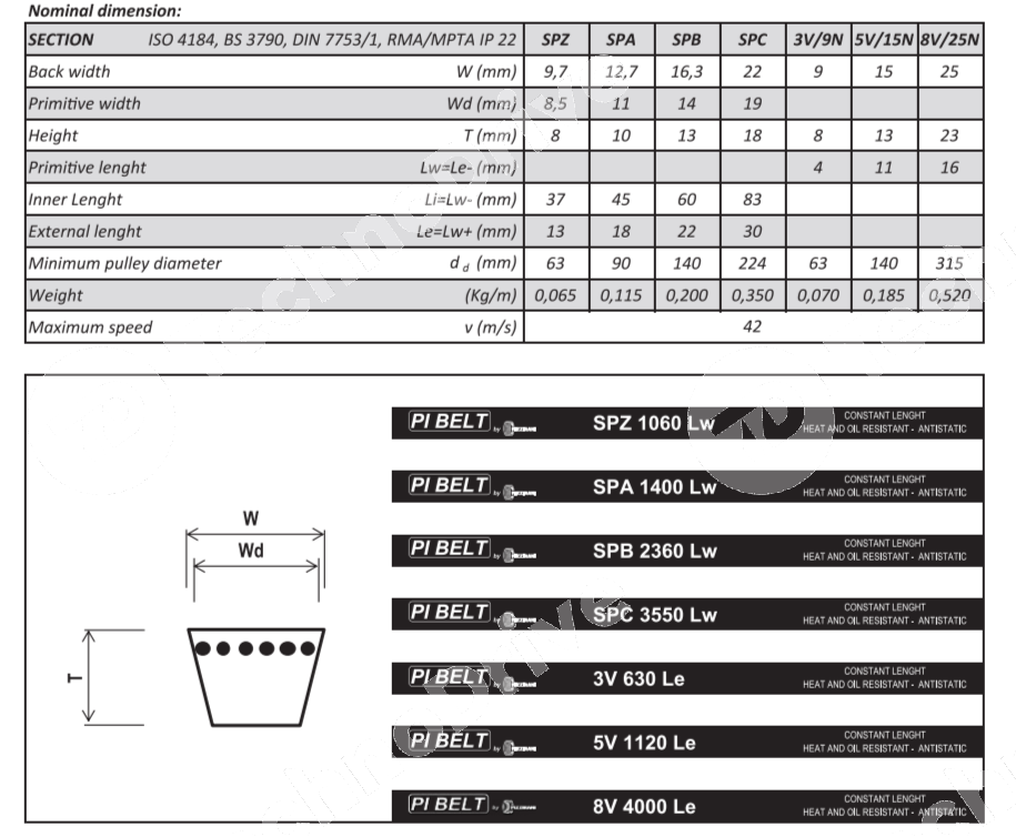 Ремень клиновой SPB 1800Lw PIZZIRANI