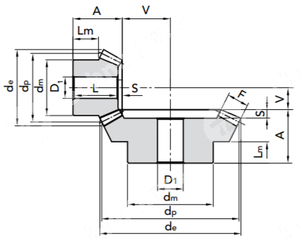 Коническая зубчатая шестерня, передат. число: 1:2, M=5, Z=32 CHIARAVALLI