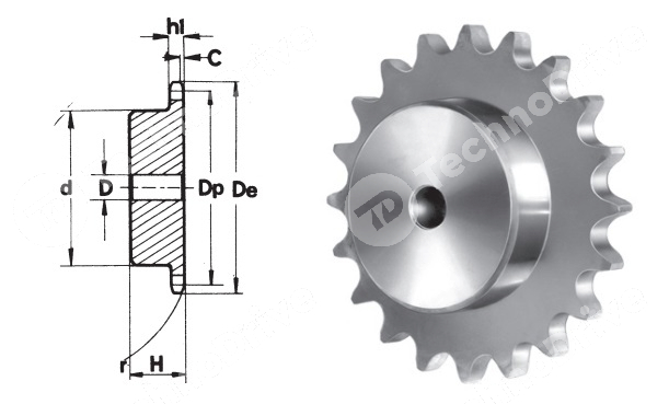 Звездочка со ступицей под расточку для цепи 16B-1 z=76 CHIARAVALLI