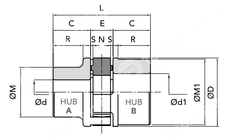 GET 55-70 A GG Ступица исп. 1, с переходом черн. отв. (ROTEX 55) CHIARAVALLI